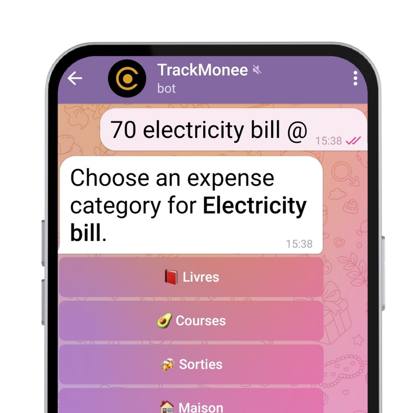 Of course ! Trackmonee is designed to simplify the expense recording process. No more need to open your spreadsheet every time you want to log an expense. Simply use Trackmonee on Telegram from your phone. Just send a message like '70 Groceries,' and you're done ! At the month's end, for example, easily /export your transactions and transfer them to your personal sheet for further personal actions.