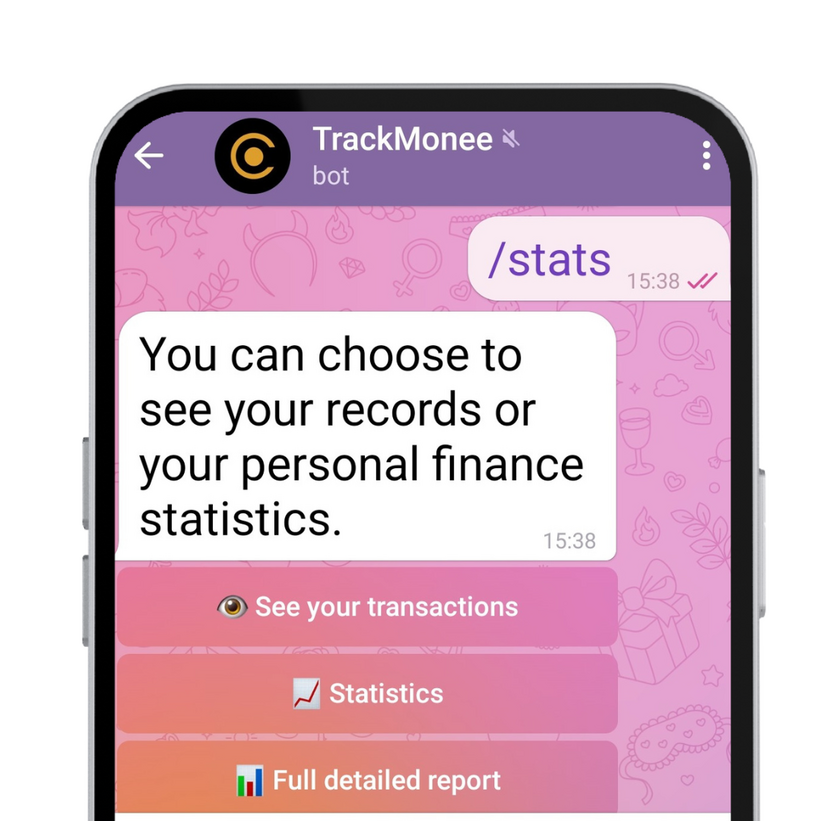 With Trackmonee on Telegram, save time — record an expense or check stats in under 5 seconds. You can still export your data to Excel if you like.